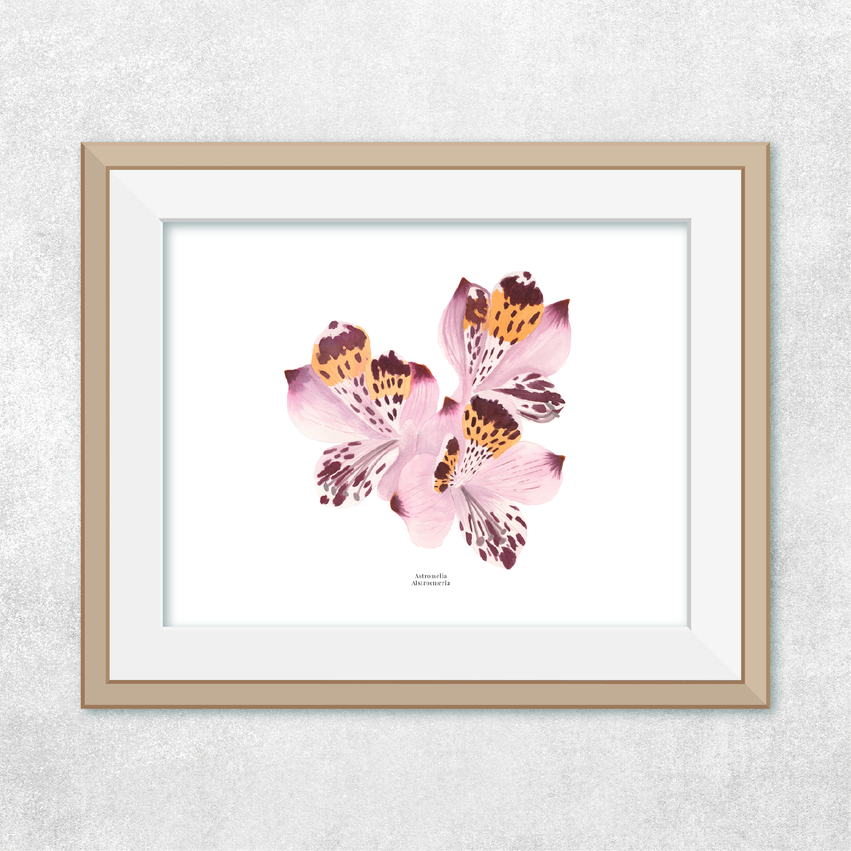 1 Lámina impresa SIN MARCO. Composición de acuarela con Astromelias. Impreso en Chile con calidad de obra de arte, tintas libres de ácidos sobre papel algodón libre de ácido texturado. Pieza firmada.
