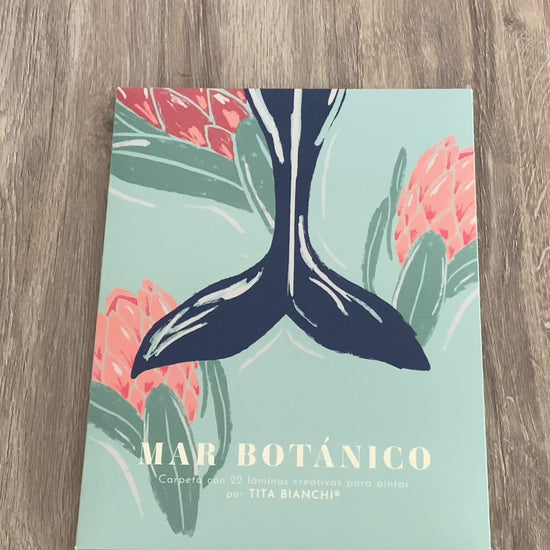 Esta carpeta es un nuevo formato de los libros para pintar, son láminas sueltas con ilustraciones inspiradas en la naturaleza, el mar, los cetáceos y la botánica